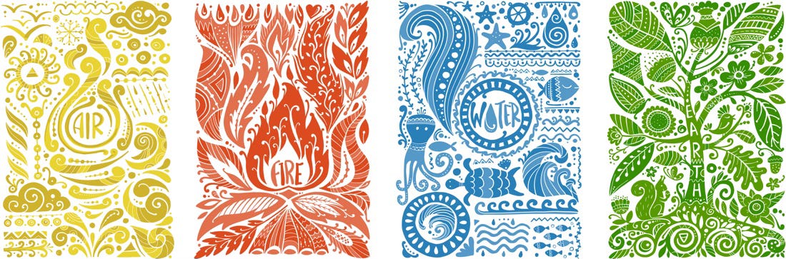 In unpacking the multitudinous aspects I have learned about and discovered over the years, along the journey to manifesting, bringing forth my own calling into this world, I can see (as of this morning), a way to use the four elements (plus a fifth, which we will start with), as a framework to make sense of the process: